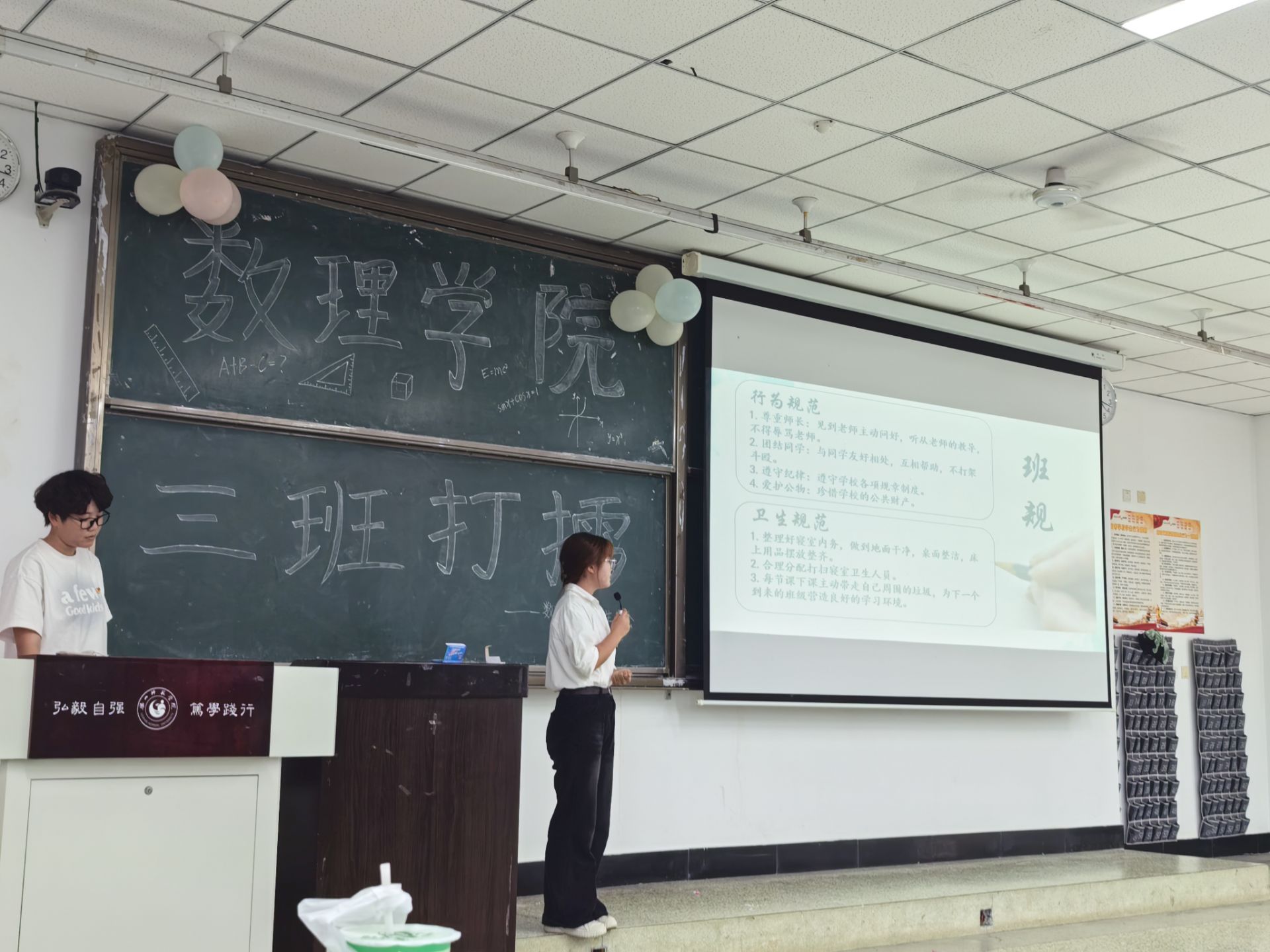 活动按照抽签顺序进行,参加评比的班级依次结合PPT对本班“班徽、班训、班规、班级风采”进行介绍,展现自身的班级文化特色,并以舞蹈、歌曲等形式,向大家进一步展现了班级同学的独特风采。经过一个多小时的精彩比拼,最终物理一班获得一等奖;数应三班、物理二班获得二等奖;应用统计班、数应一班、数应二班获得优秀奖。各班展示结束后,员工分会主席青浩楠进行了点评,他肯定了各班级的出色表现,同时也具体地指出了存在的一些问题,并且提出了相应的改进措施。
