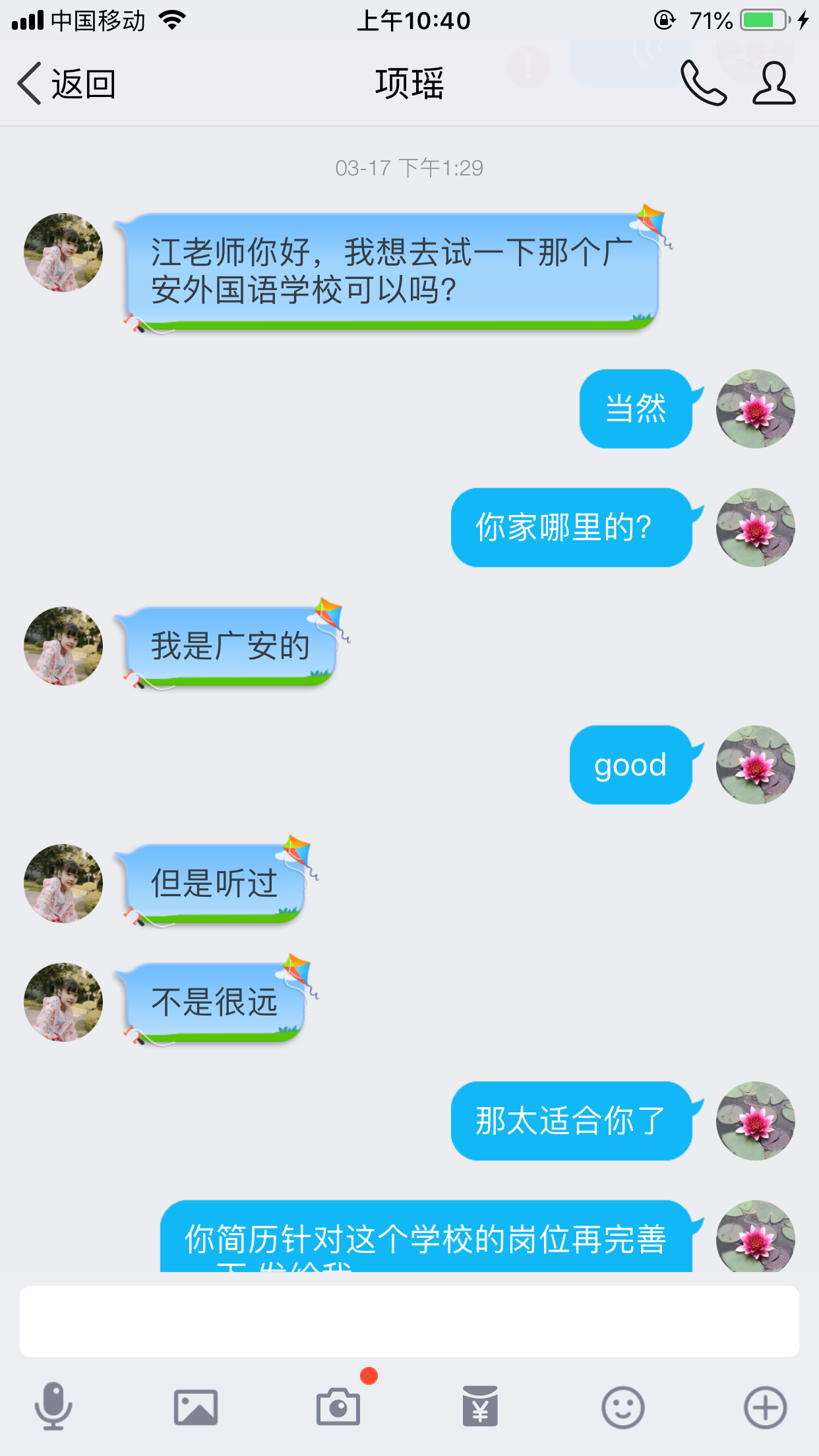 20届辅导员江纳充分了解用人单位的需求,定向调研员工求职意向,并针对性地发动广安、周边籍贯的员工以及有意愿长期扎根该校工作的员工报名参加应聘。通过线上面试初选和到校参加考核和实地参观,最终有两名员工与该校签订了三方协议。
