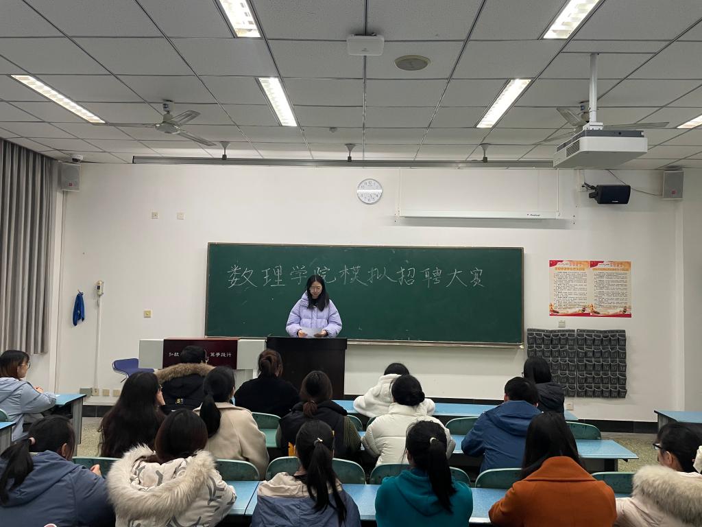 此次模拟招聘大赛由选手进行个人简历介绍和评委现场点评提问两个环节组成。本次活动采取开放式面试形式,增设观众席。在选手参加面试时,其他同学也能够在台下观摩,学习借鉴,取长补短,提升自我。首先,参赛选手根据应聘职位结合ppt进行详细阐述,ppt内容包括自我介绍、未来畅想,以及竞聘岗位要求。之后,由评委就选手简历和自我介绍中的情况进行针对性提问,并根据每位同学的简历制作、以及现场应变的表现进行打分。