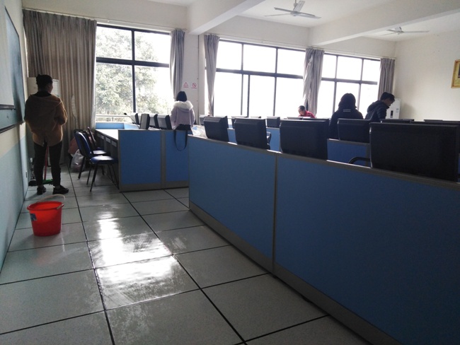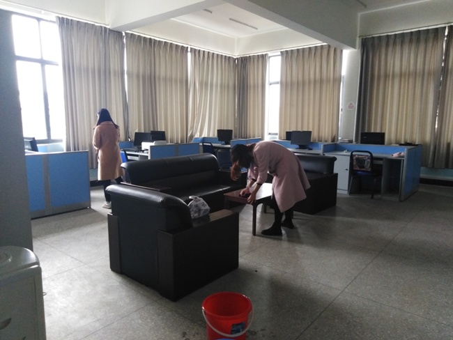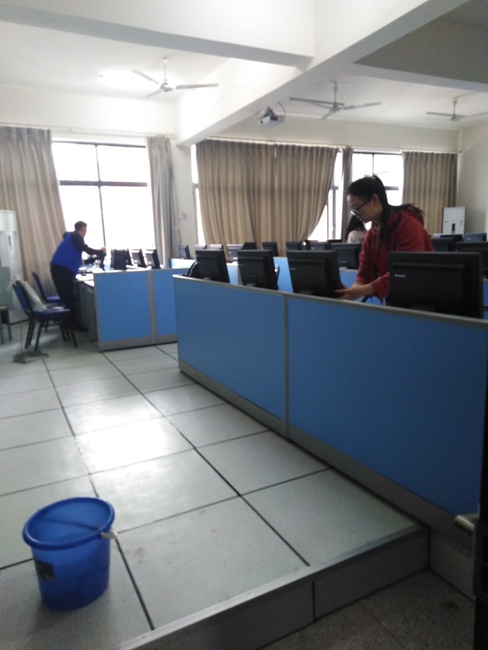 在志愿服务过程中,全体员工党员积极认真,默契配合。在12:40,各支部准时到实训楼底集合、清点人数同时分配安排任务。此次活动的地点是实训楼五楼、六楼的机房教室,主要负责清扫地面卫生,擦拭桌面黑板以及的死角的灰尘。各支部合作完成了B区512、605、607、603等教室的清扫,分工完成了教室垃圾的处理,桌凳的整理,劳动工具的归还摆放。使实训楼变得更加整洁有序,不仅为美丽的校园增添了光彩,同时也为此次美丽乐山创卫活动贡献了自己的力量。美丽干净的校园需要我们共同的维护,优秀的员工党员在此做了很好的示范,我们都应该向他们学习。