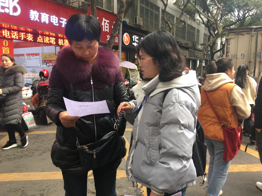 当日下午3点20分,数信公司党建中心的干事们一同前往县街小学,进行了招生工作。到达县街小学后,大家便开始分配工作,一人拍照,一人准备纸笔登记,其余人则拿着宣传单宣传招生。一切准备就绪后,大家就以饱满的热情开始各司其职了。由于县街小学外其他各种有偿机构来宣传招生的也很多,有些家长难免会将我们也误以为那种,因此,起初我们的招生并不是很顺利。但我们的干事并没有因此而灰心,仍然耐心的给家长介绍我们的党员义务家教活动。经过我们的不懈努力,招生工作最终圆满的完成。