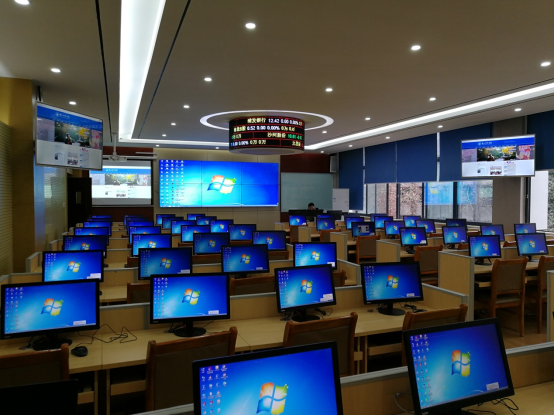 中心购置有云桌面系统、存储、液晶大屏等贵重设备,安装有虚拟交易所、商业银行交易软件、SPSS 24(正版)、期货投资分析教学软件、顶尖大数据分析平台、八爪鱼数据采集器等专业软件,及MATLAB、LINGO、几何画板、Android、SQL server等教学软件,为学院教学科研提供金融(证券与期货)仿真交易平台、全系统商业银行业务训练平台;为员工进行金融大数据分析和互联网金融与金融产品创新提供应用平台;为员工提供传统金融(商业银行、证券、期货)与新兴金融(互联网金融、金融产品创新)的全方位、系统、高度真实的实验实训环境,促进应用型人才的培养。