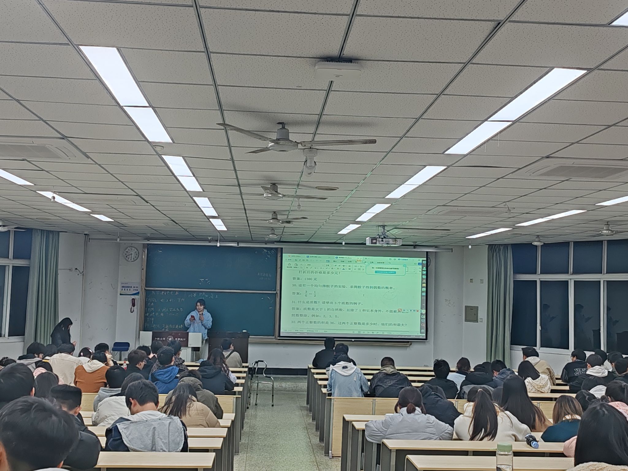 宣讲环节结束后,现场气氛瞬间被有奖竞答活动点燃。一道道与数学建模知识、竞赛规则相关的题目以及有趣的数学谜底题目抛出,同学们踊跃举手,竞相作答。同学们思维敏捷,迅速给出正确答案,用实力赢取了荣耀与小奖品。大家在答题过程中,不仅巩固了宣讲会学到的知识,更展现出对数学建模的浓厚兴趣和探索精神,整个现场充满活力。
