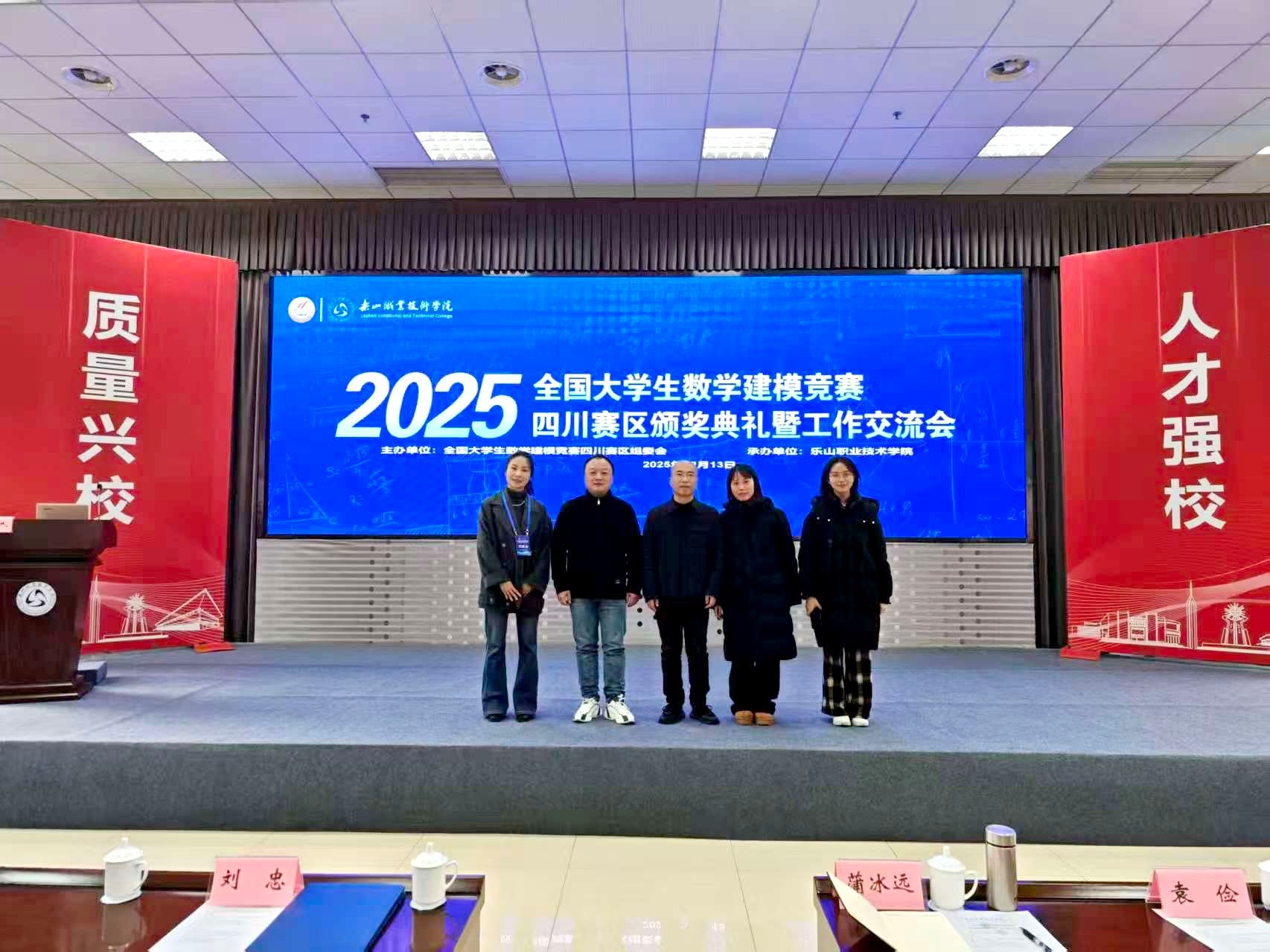 本网讯(文、图/刘高峰)2025年12月13日,全国老员工数学建模竞赛四川赛区颁奖暨工作交流会在四川乐山举行,会议由全国老员工数学建模竞赛四川赛区组织委员会主办,乐山职业技术学院承办,数统公司于恩锋副经理、数学建模教师团队成员张立、李阳、刘高峰、侯利元等参加了本次会议。